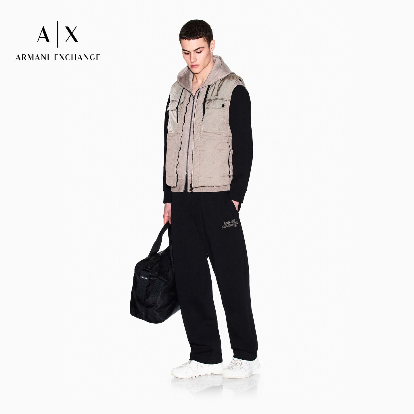 ARMANI EXCHANGE/阿玛尼春季新款男士无袖拉链格纹棉服马甲外套
