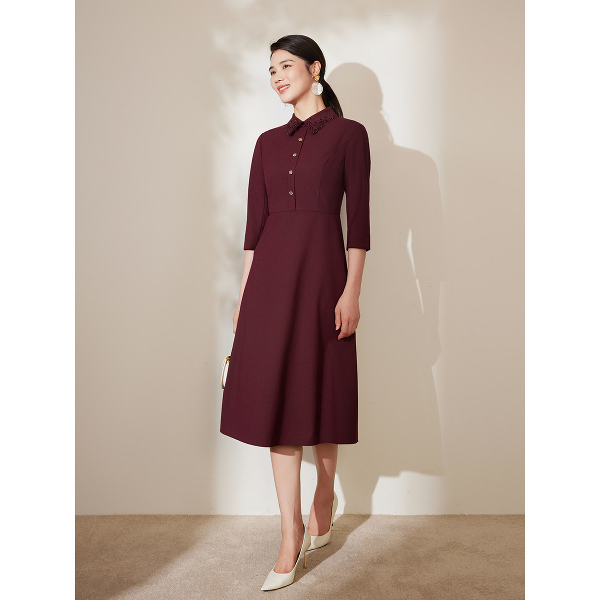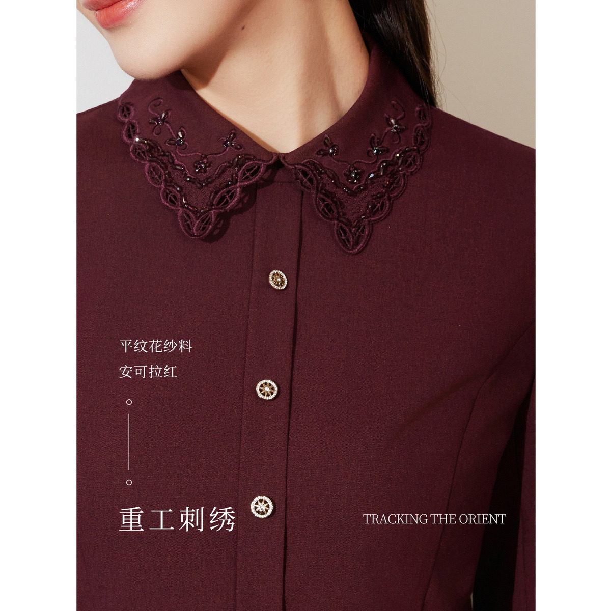 【重工刺绣】BBLLUUEE/粉蓝衣橱2025秋装新款复古通勤衬衫连衣裙
