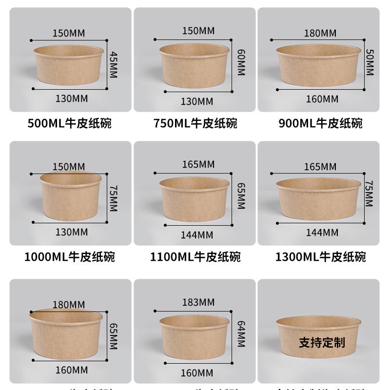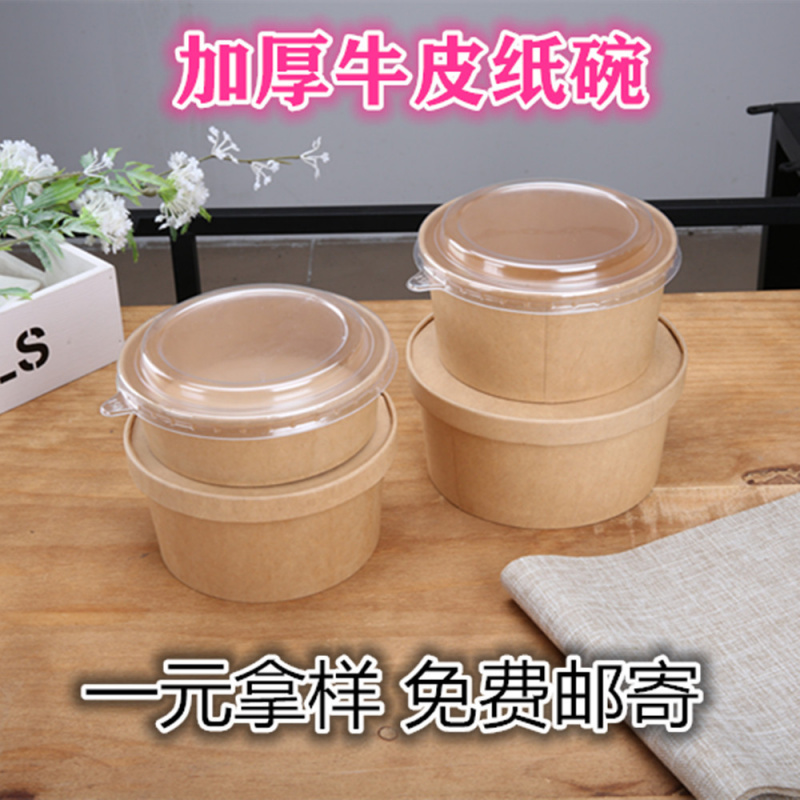 一次性牛皮纸碗食品加厚圆形打包盒快餐饭盒沙拉轻食小吃碗可印刷