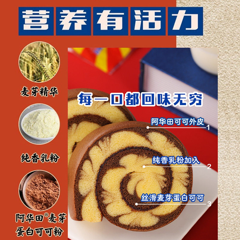 阿华田巧克力蛋糕卷400g可可瑞士卷独立包装营养软面包代早餐零食
