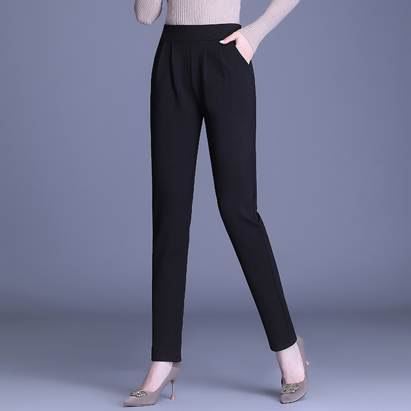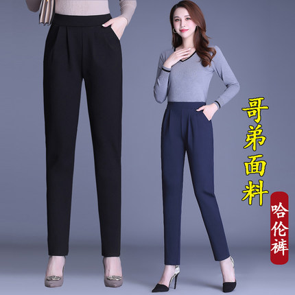 哈伦裤女秋冬季2025新款高腰显瘦九分休闲妈妈裤子加绒小脚西装裤