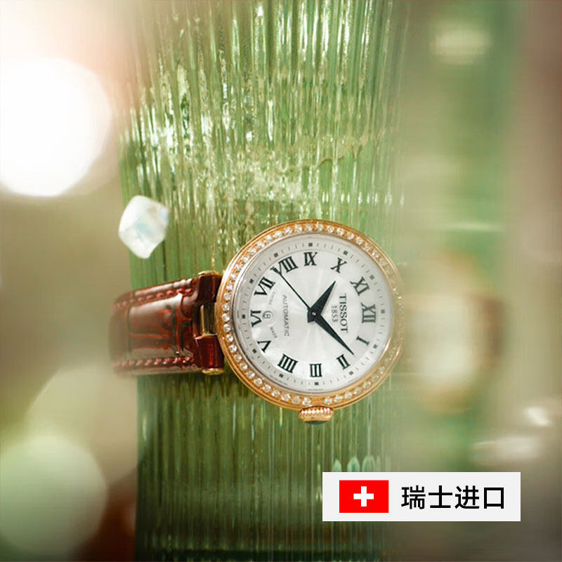 【自营】【刘亦菲同款】Tissot天梭小美人臻钻款瑞士机械皮带女表