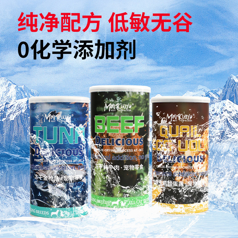 肉食回归牛肉金枪鱼鹌鹑蛋黄冻干猫狗零食互动奖励宠物拌粮辅食