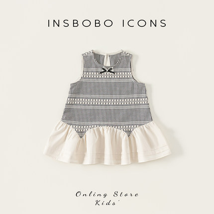 INSbobo女童连衣裙夏2026新款女宝背心裙儿童裙子夏季宝宝格子裙