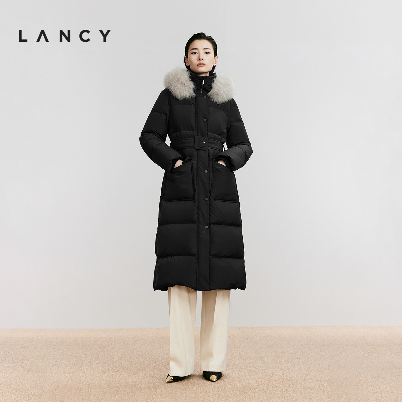 【匈牙利90白鹅绒】LANCY/朗姿2025冬新款狐狸毛领高克重长羽绒服