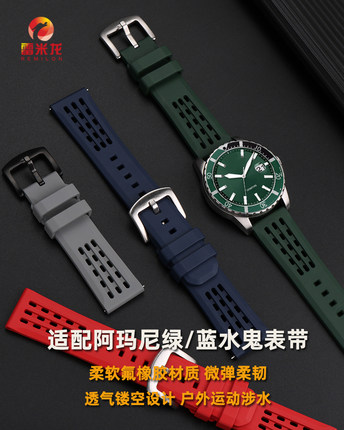 适配阿玛尼表带AR11338绿/蓝水鬼系列潜水表链 黑武士AR60008 1970 1982休闲运动氟橡胶手表带男22mm