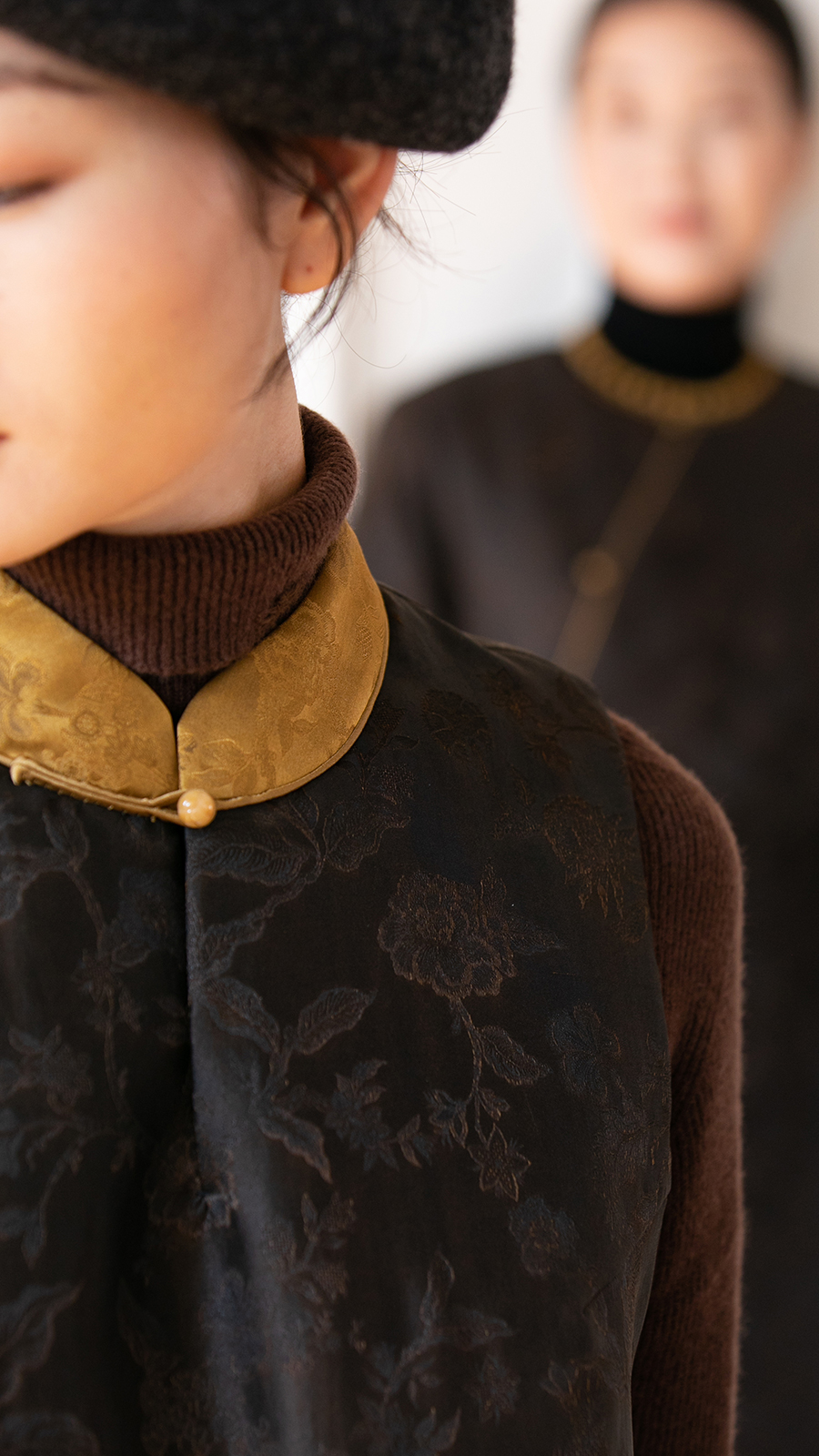 布小匠原创设计冬季新款桑蚕丝提花香云纱中式马甲外套真丝马夹女