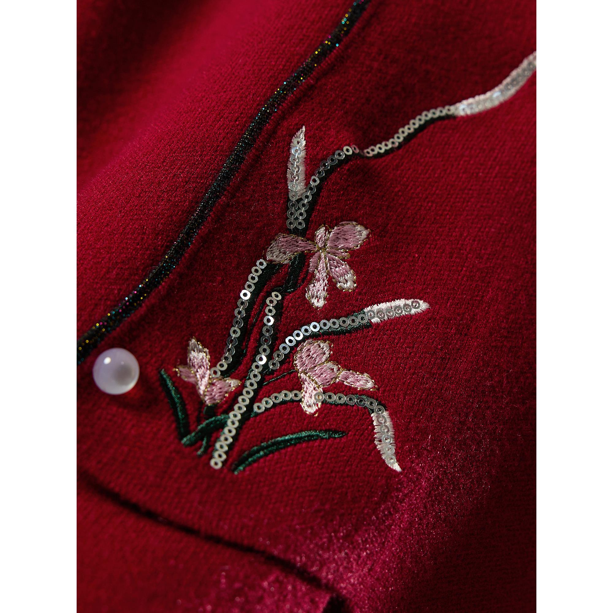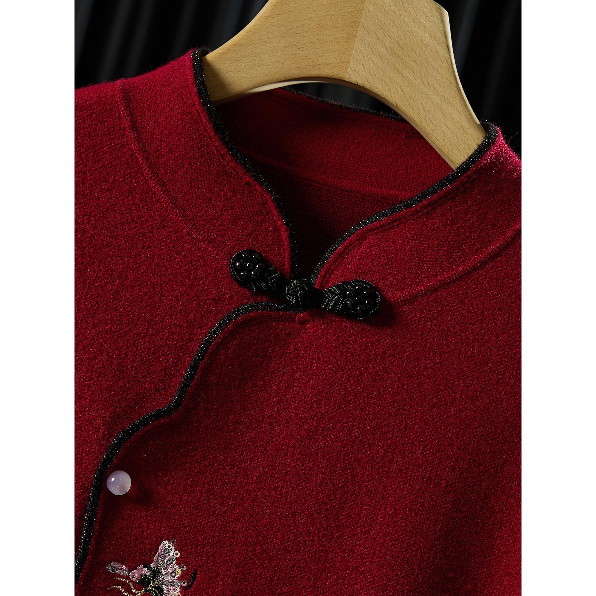 中式妈妈秋装外套羊毛衫中老年人女春秋红色上衣服喜婆婆婚宴礼服