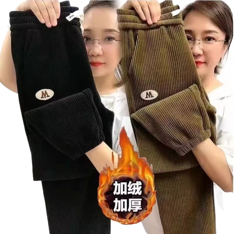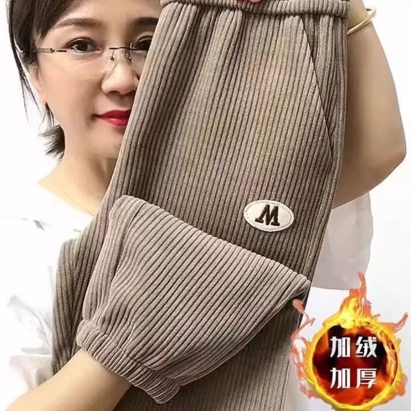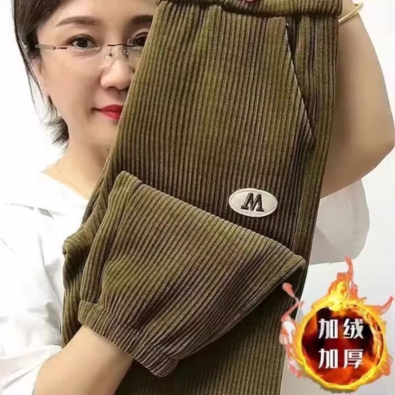 2025秋冬新款灯芯绒休闲哈伦裤高腰大码宽松显瘦加绒厚女士裤子