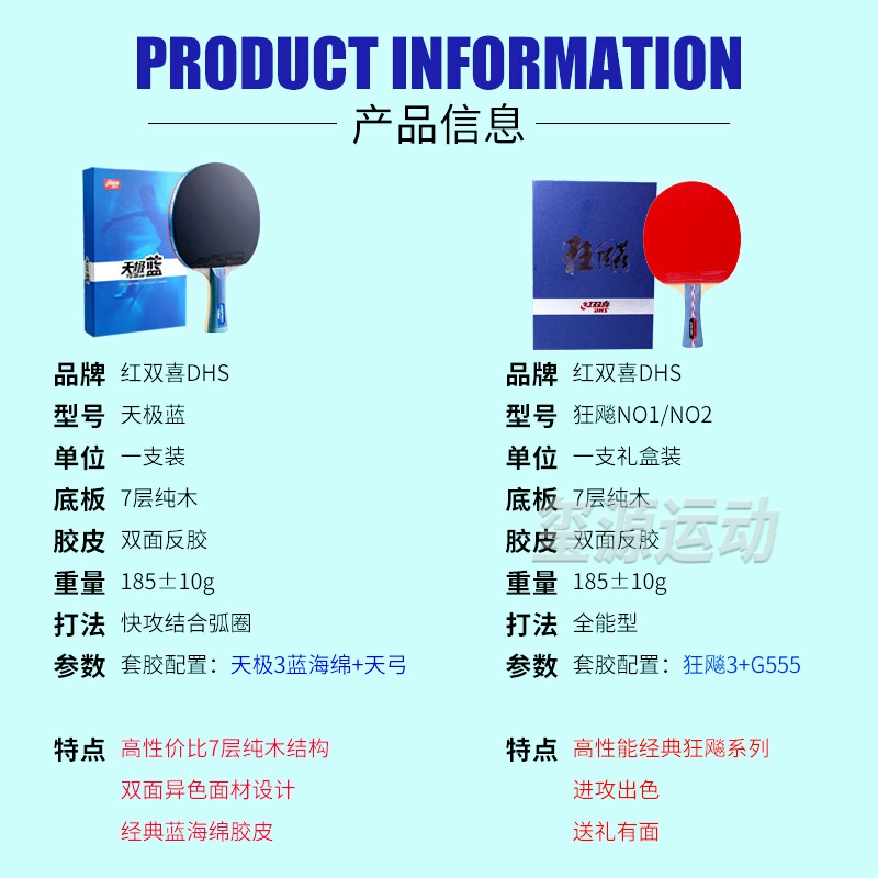红双喜狂飙天极蓝乒乓球拍专业比赛横拍直拍正品高级碳素