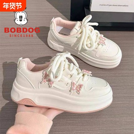 巴布豆休闲板鞋女童2025春季新款小众鞋厚底小白鞋面包鞋运动鞋子