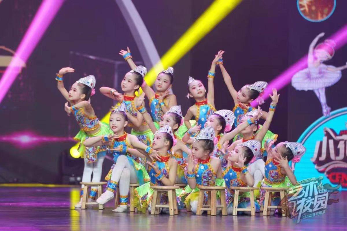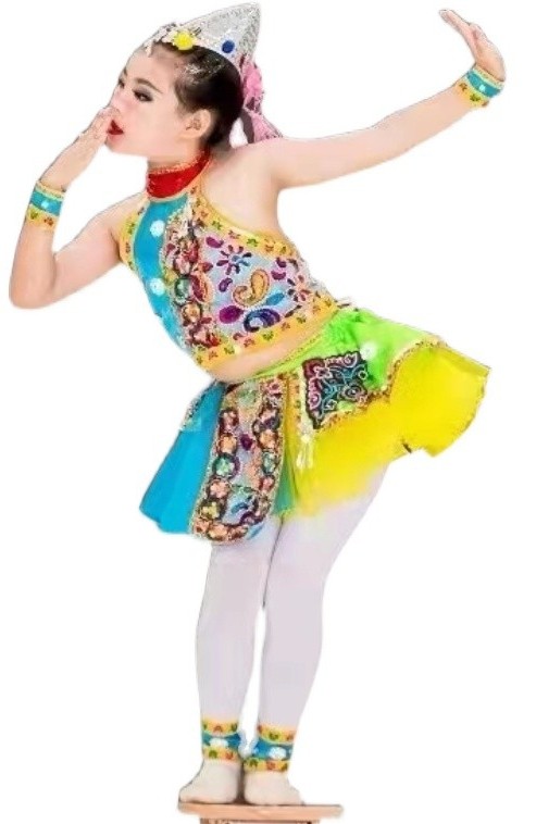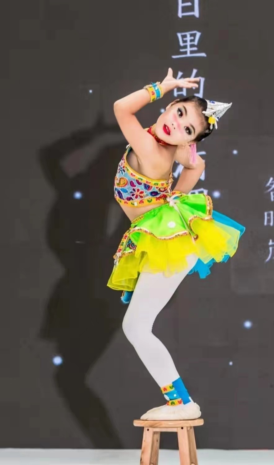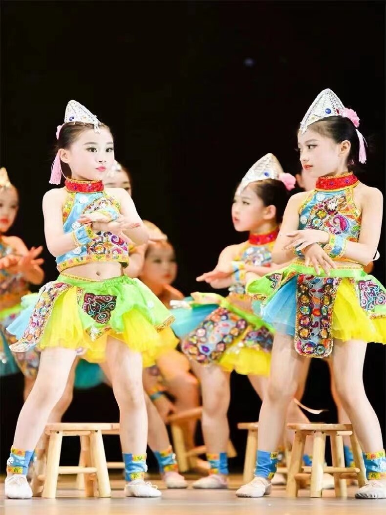 抖音紫金舞蹈夏日里的滴滴调同款民族儿童演出服六一表演服装凳子