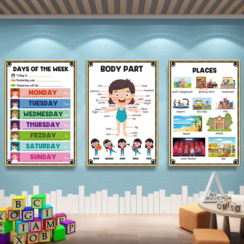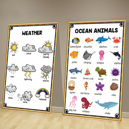 英文教室装饰画海报英语角单词分类贴纸国际幼儿园文化墙环创挂画