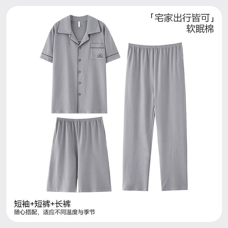 猫人纯棉睡衣男春秋夏季薄款短袖长裤2025新款可外穿家居服三件套