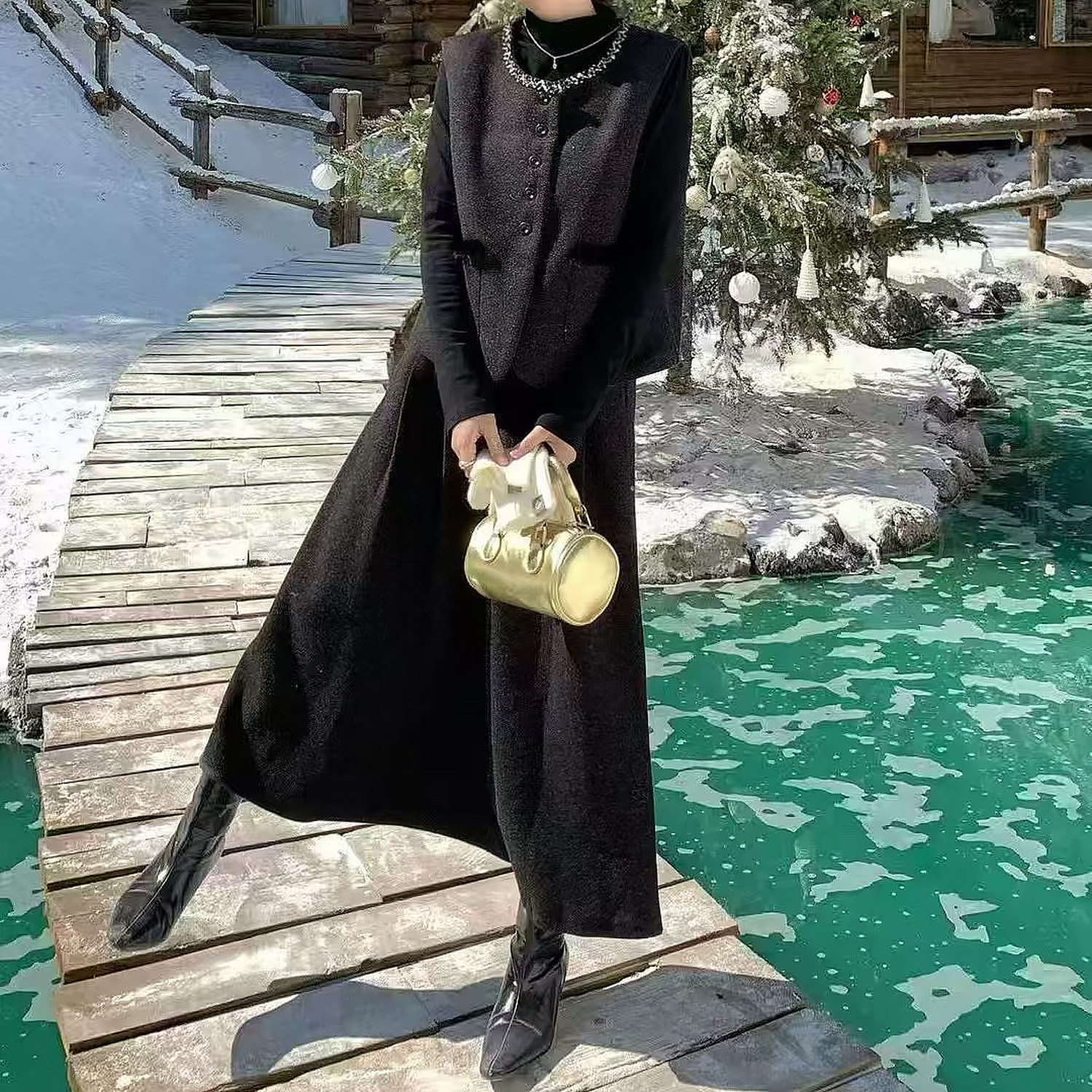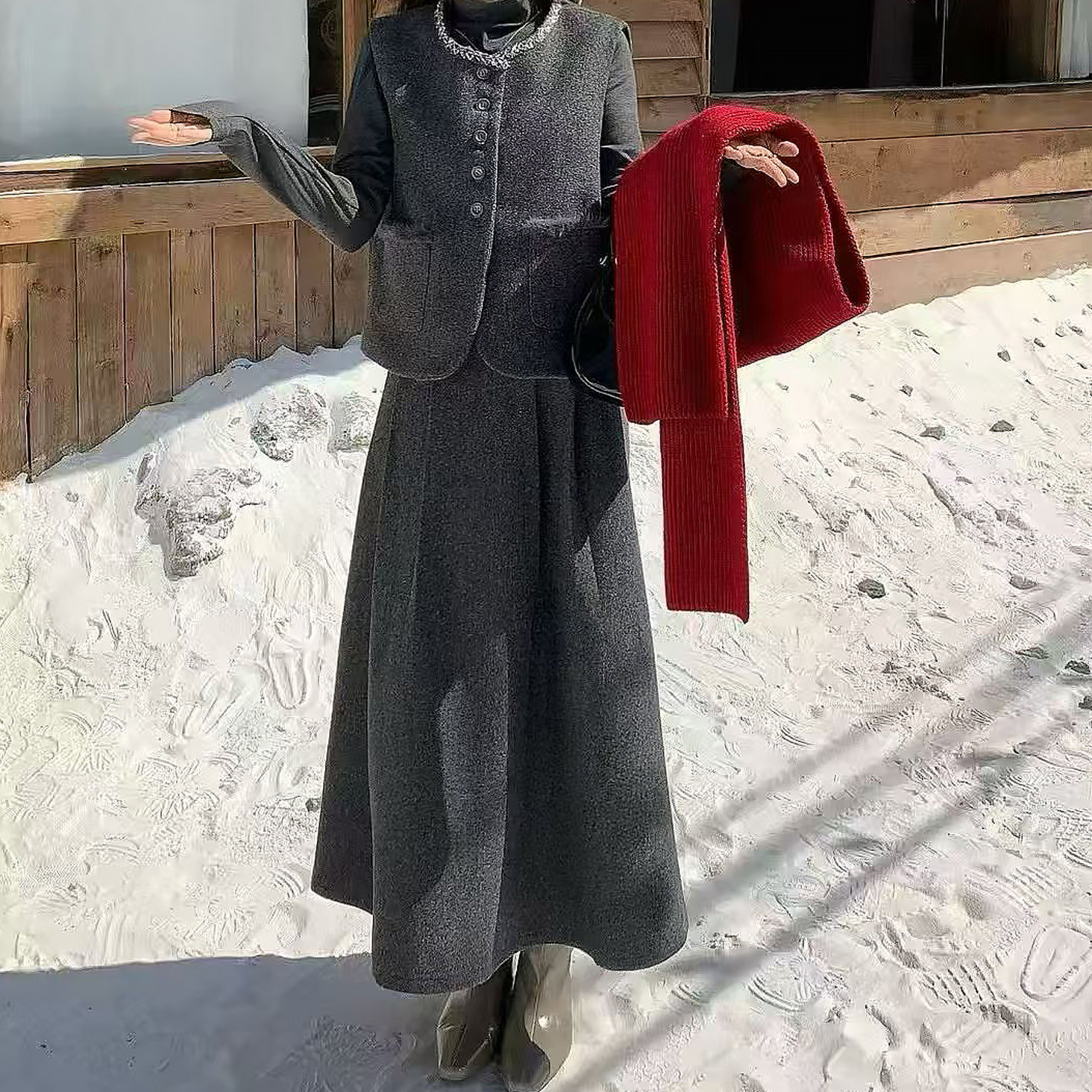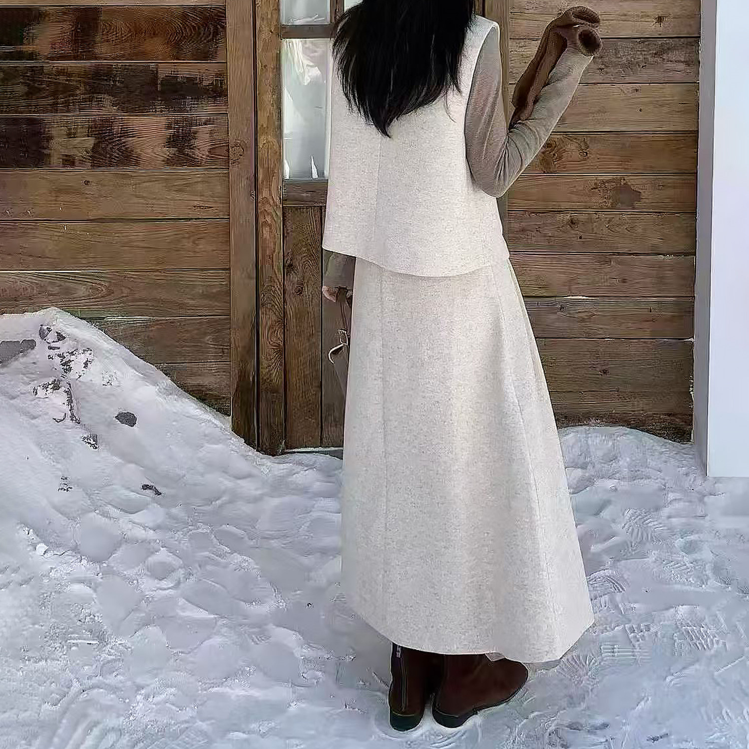 实拍 淑女风小香风毛呢马甲三件套装裙女秋冬轻奢名媛半身裙套装