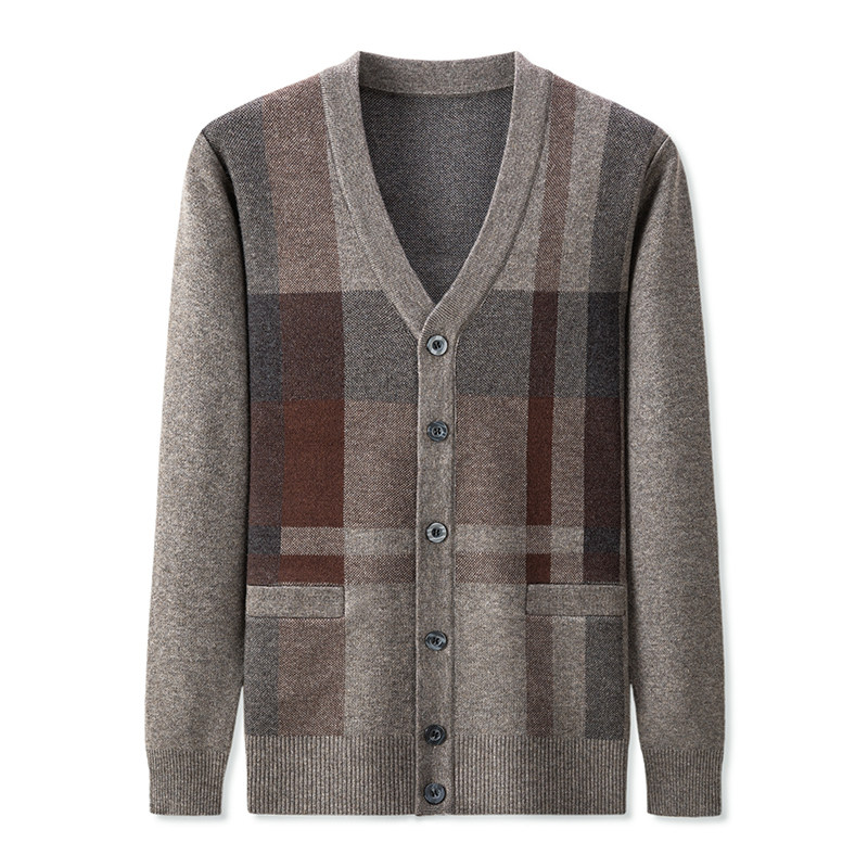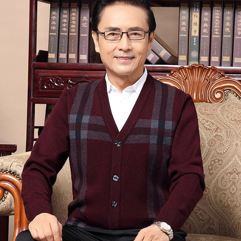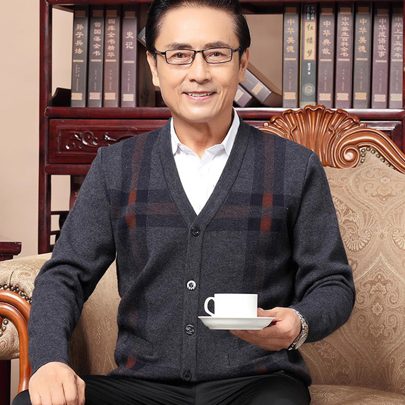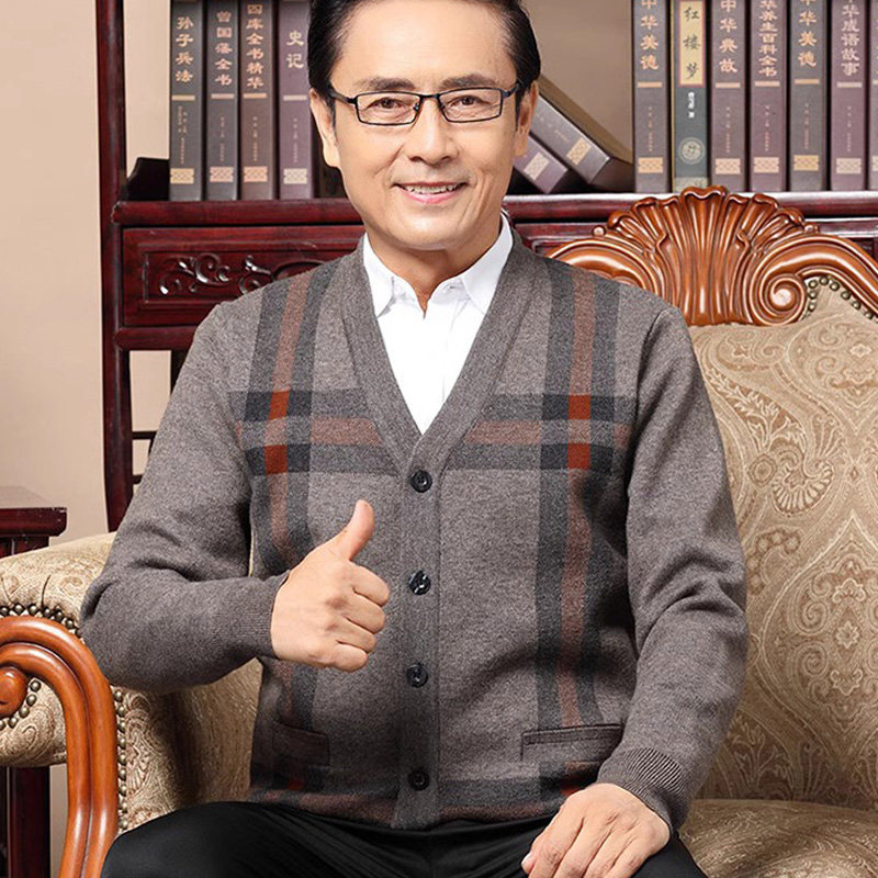 皮尔卡丹冬季羊毛衫男开衫中老年爸爸装加绒加厚毛衣爷爷保暖外套
