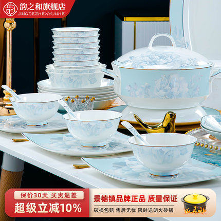 碗碟套装家用欧式轻奢2025景德镇陶瓷乔迁餐具高温盘子高级感