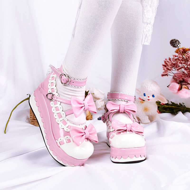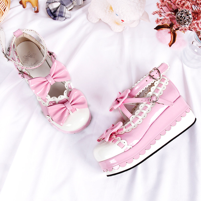 春秋圆头甜美LOLITA鞋厚底松糕坡跟细带公主蝴蝶结洛丽塔鞋9896