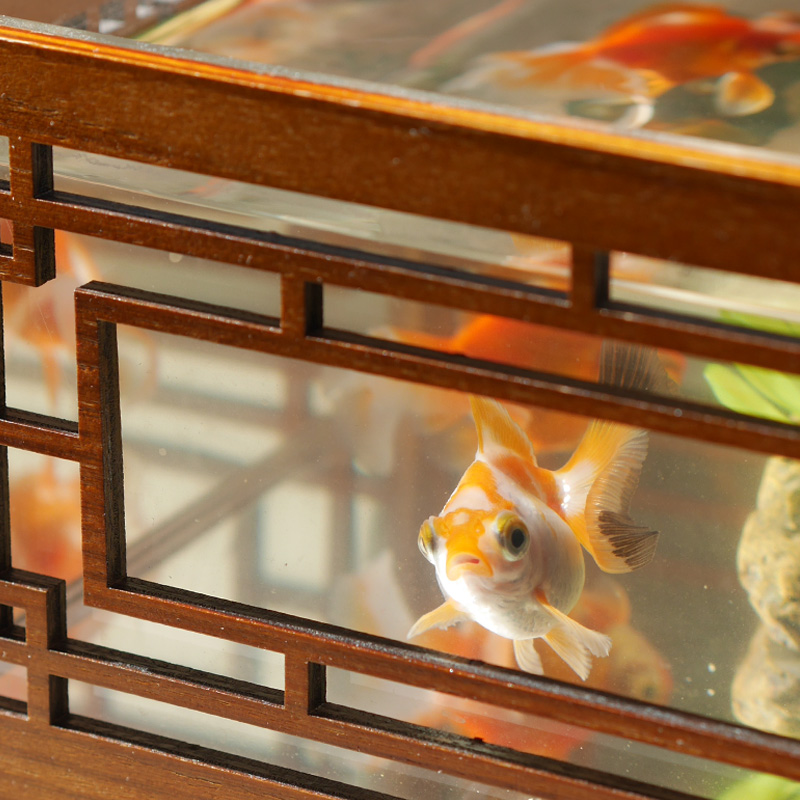 创意金鱼缸生态缸桌面小型带过滤龟缸水族箱中式古典风水缸中国风