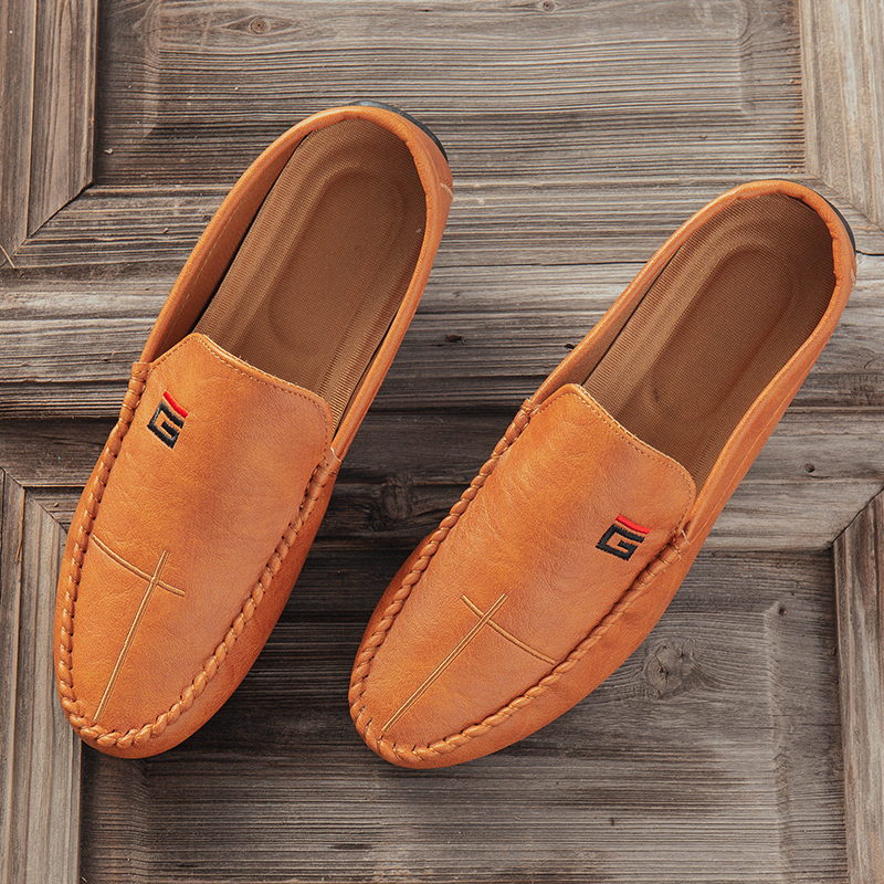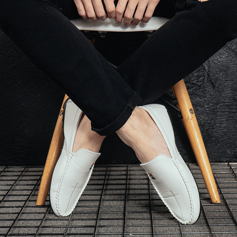 白色豆豆鞋男秋季懒人鞋百搭新款潮流开车男鞋男士韩版休闲软皮鞋
