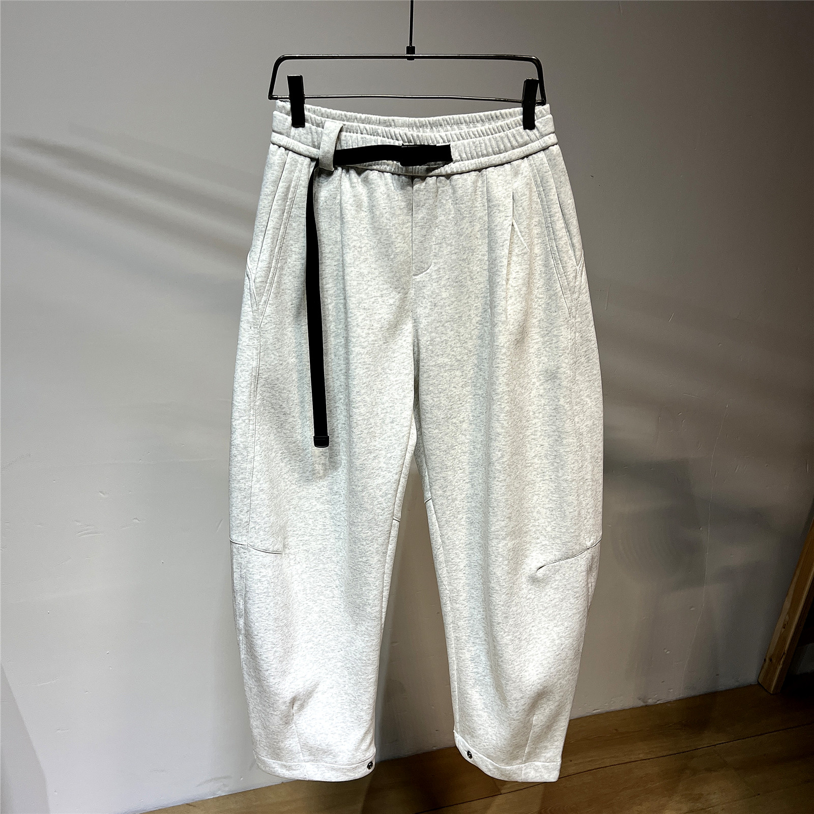 日系休闲痞帅宽松阔腿弯刀针织卫裤男松紧腰百搭直筒灰色运动裤潮