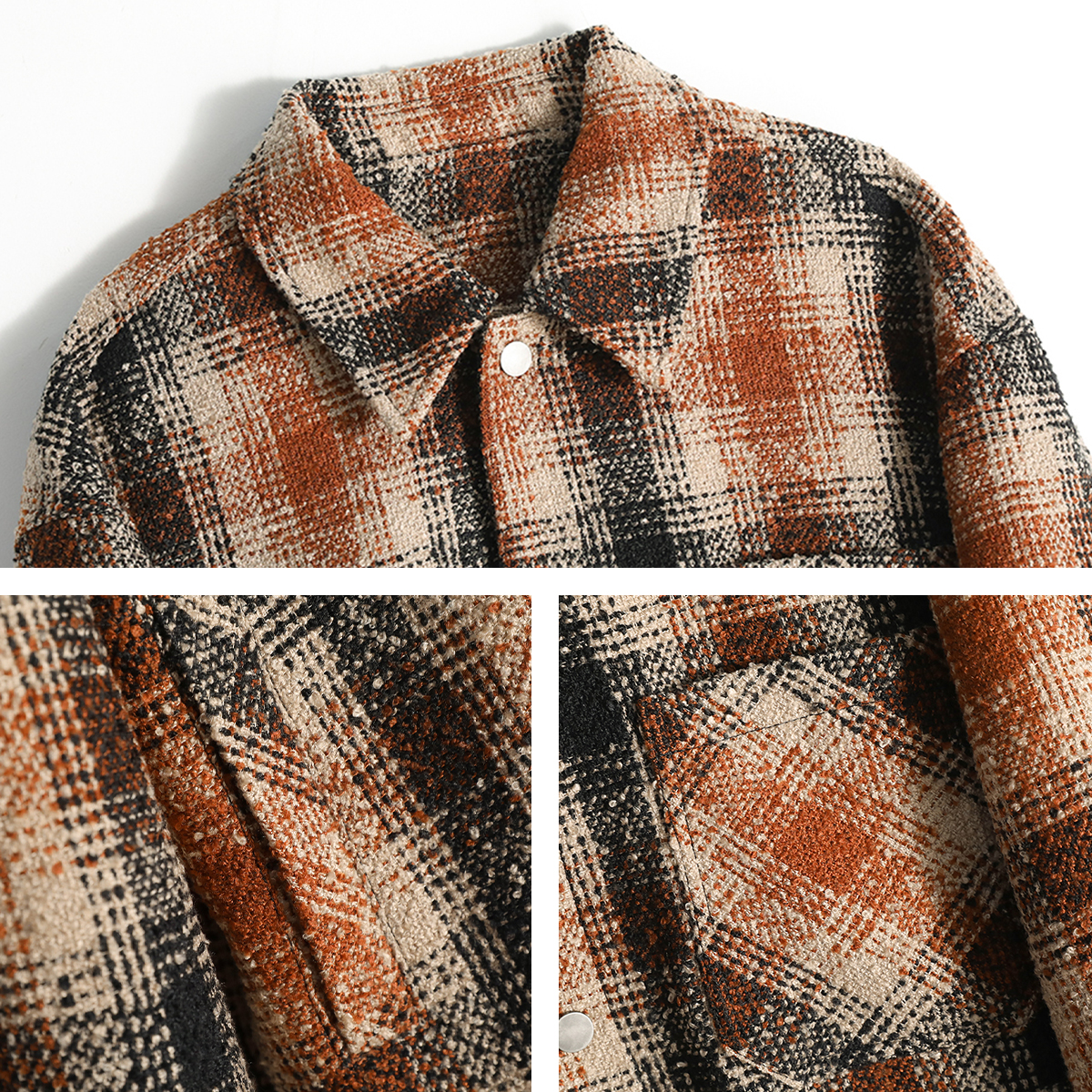 Mind Bridge潮牌复古格纹外套男士春秋季肌理感衬衫式小香风夹克