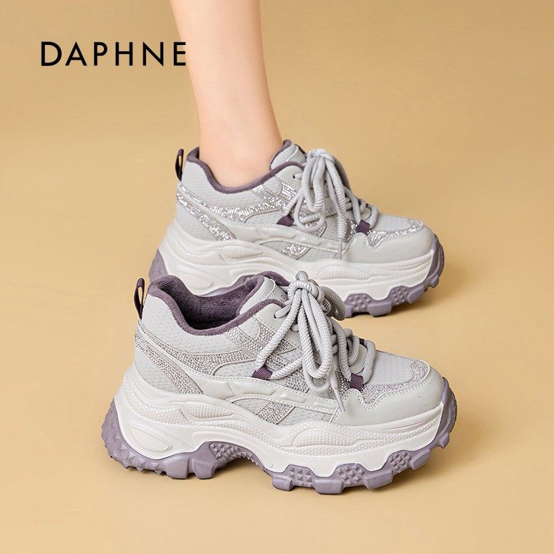 达芙妮2025秋冬新款厚底增高加绒老爹鞋时尚休闲百搭轻便潮流女鞋
