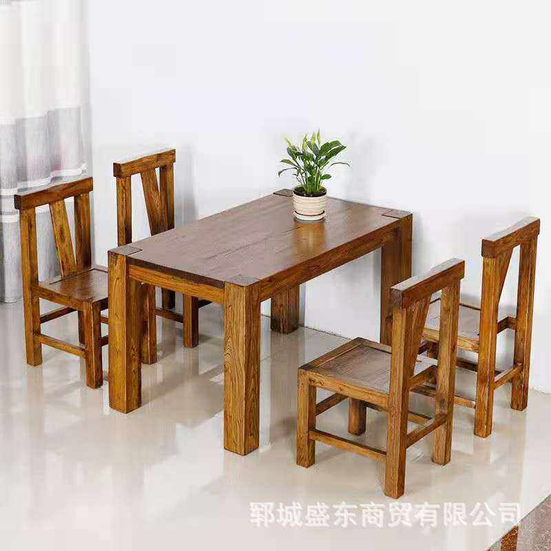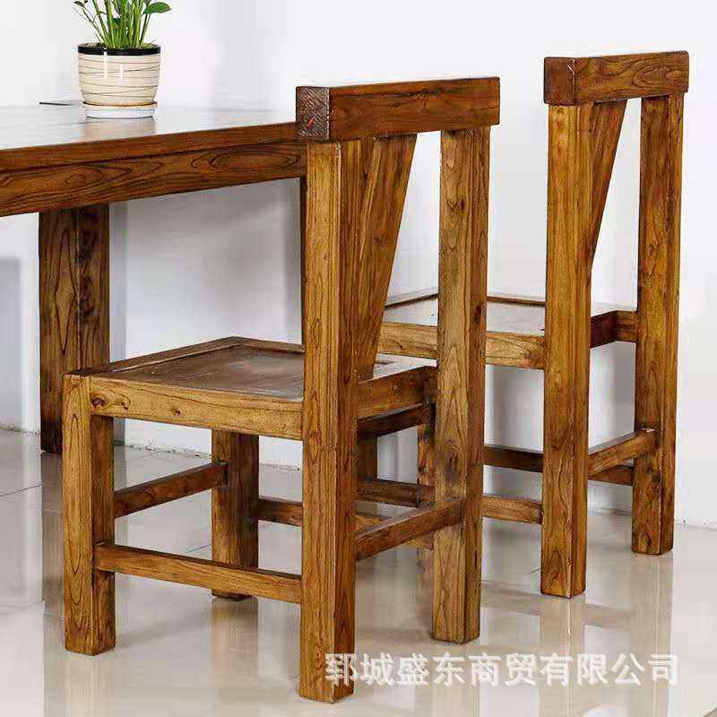 老榆木家具实木餐桌餐椅长条凳组合长方形新中式餐厅成套餐桌椅
