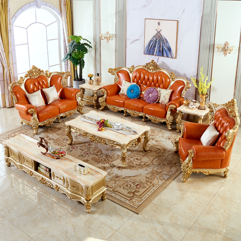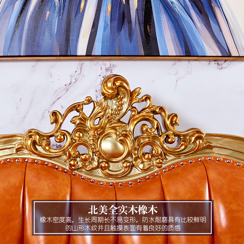 欧式沙发 美式奢华1234组合实木雕花水性漆头层牛皮客厅沙发别墅
