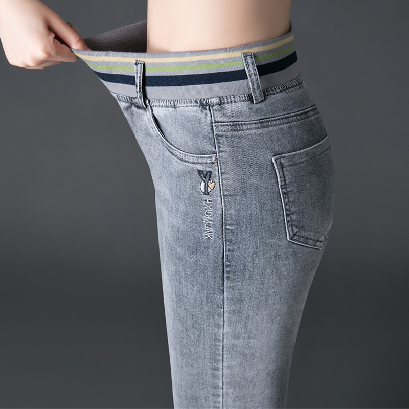 烟灰色松紧腰牛仔裤女士2025年秋季新款高腰女裤直筒裤春秋长裤子