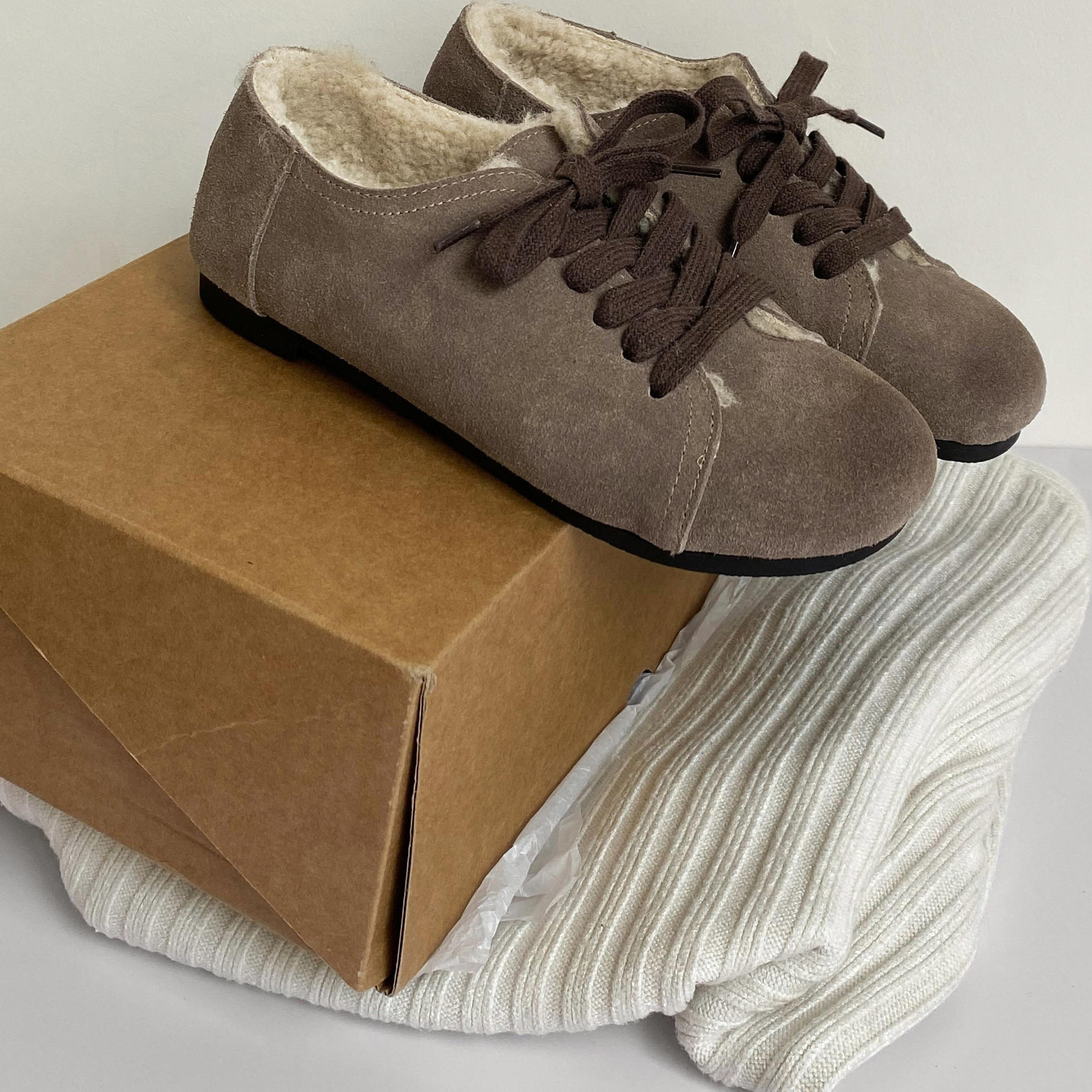 新款Tombor通宝女鞋学院风圆头牛皮百搭日系松果鞋保暖加绒乐福鞋