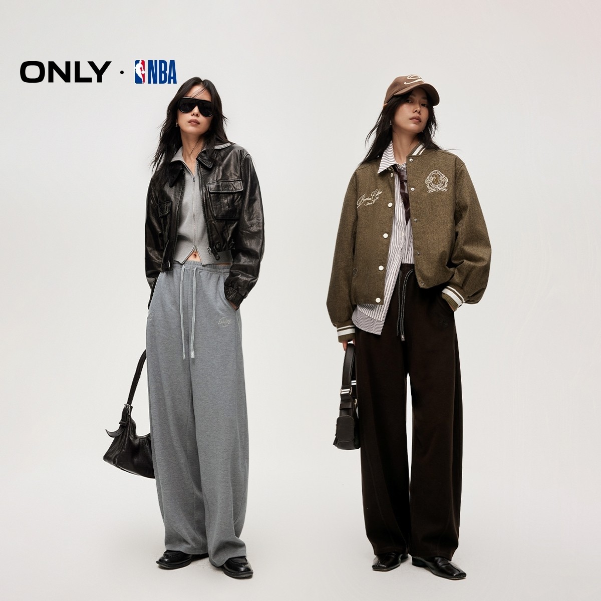 【NBA联名】ONLY2025冬季新款立体松紧香蕉裤高腰阔腿长裤休闲裤