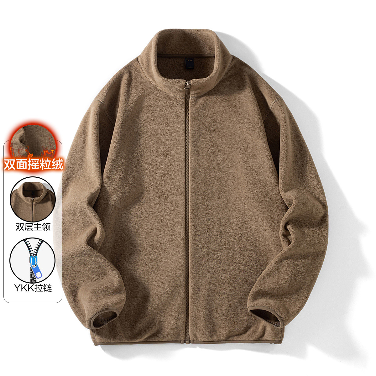 罗蒙秋冬双面摇粒绒立领夹克长袖万粒绒拉链男士加厚开衫保暖外套