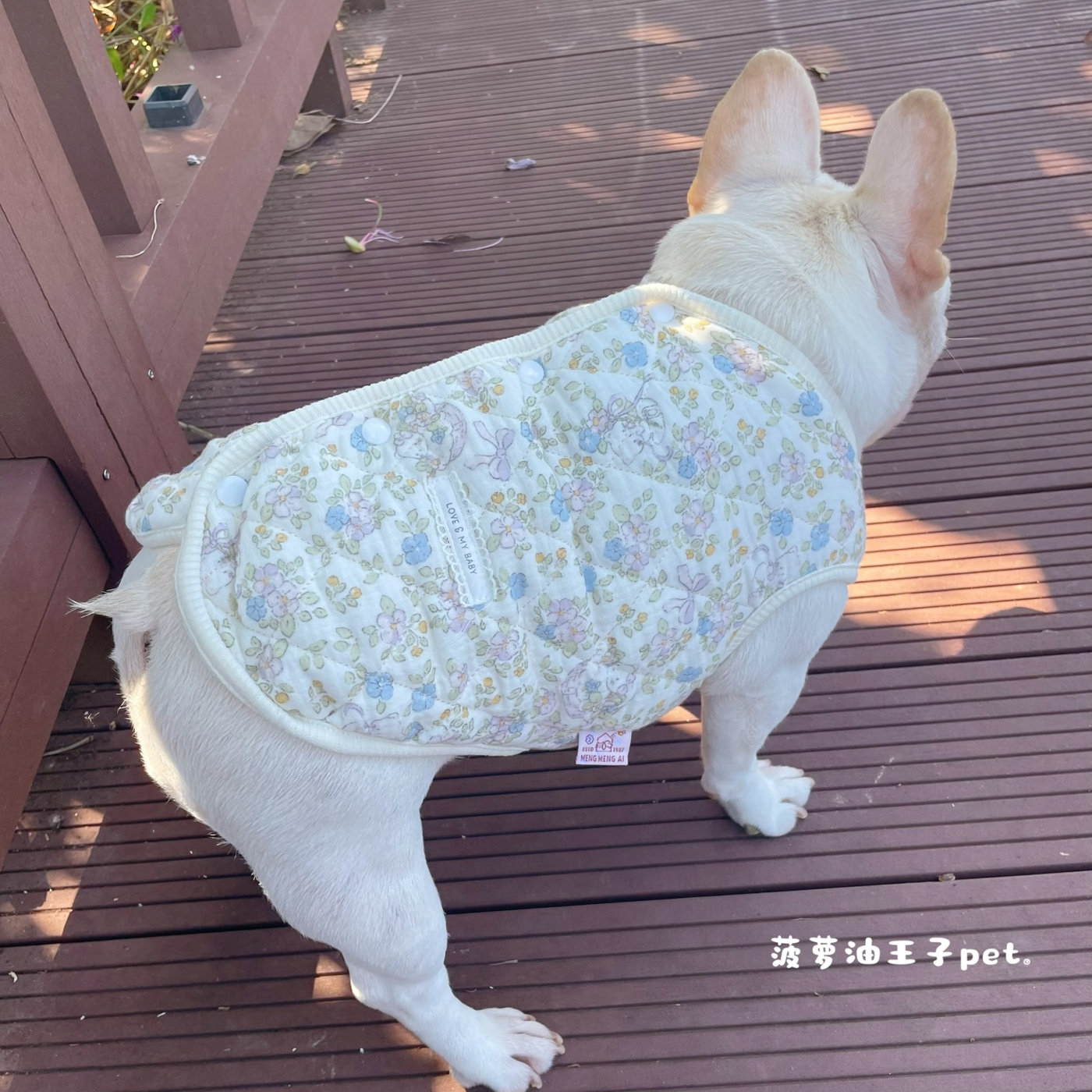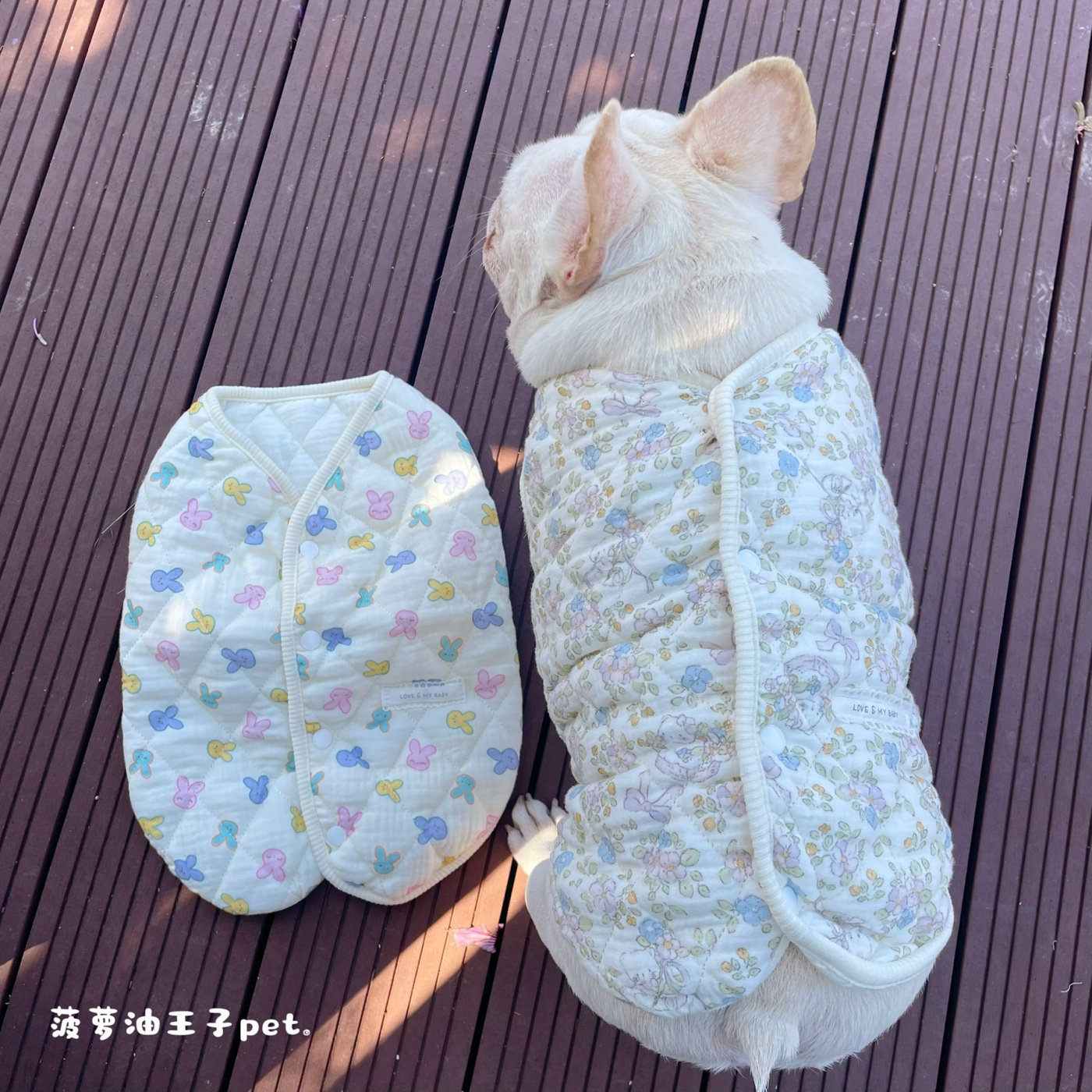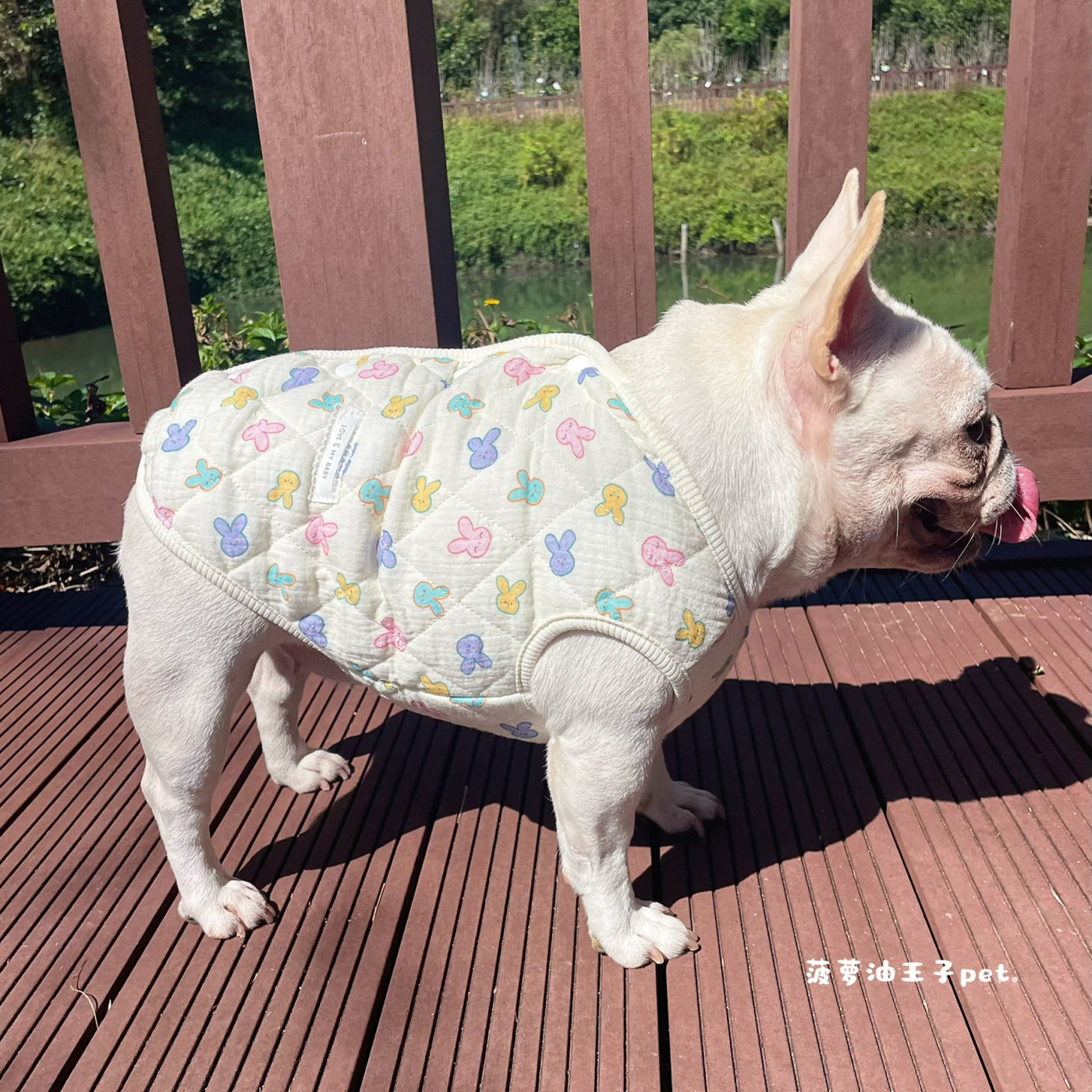 新款宠物衣服 秋冬保暖可爱棉麻马甲背心 后背开扣 法斗胖狗衣服