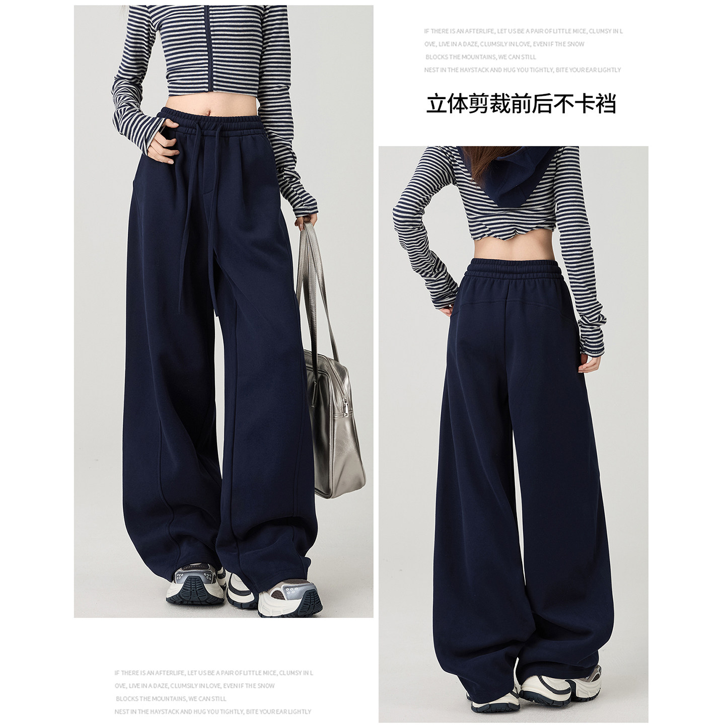加绒美式轻弯刀运动卫裤慵懒垂顺