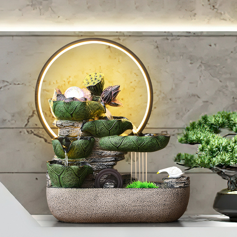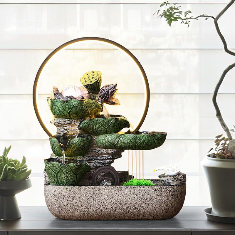 新中式流水生财摆件喷泉景观循环水客厅玄关办公室风水轮装饰乔迁