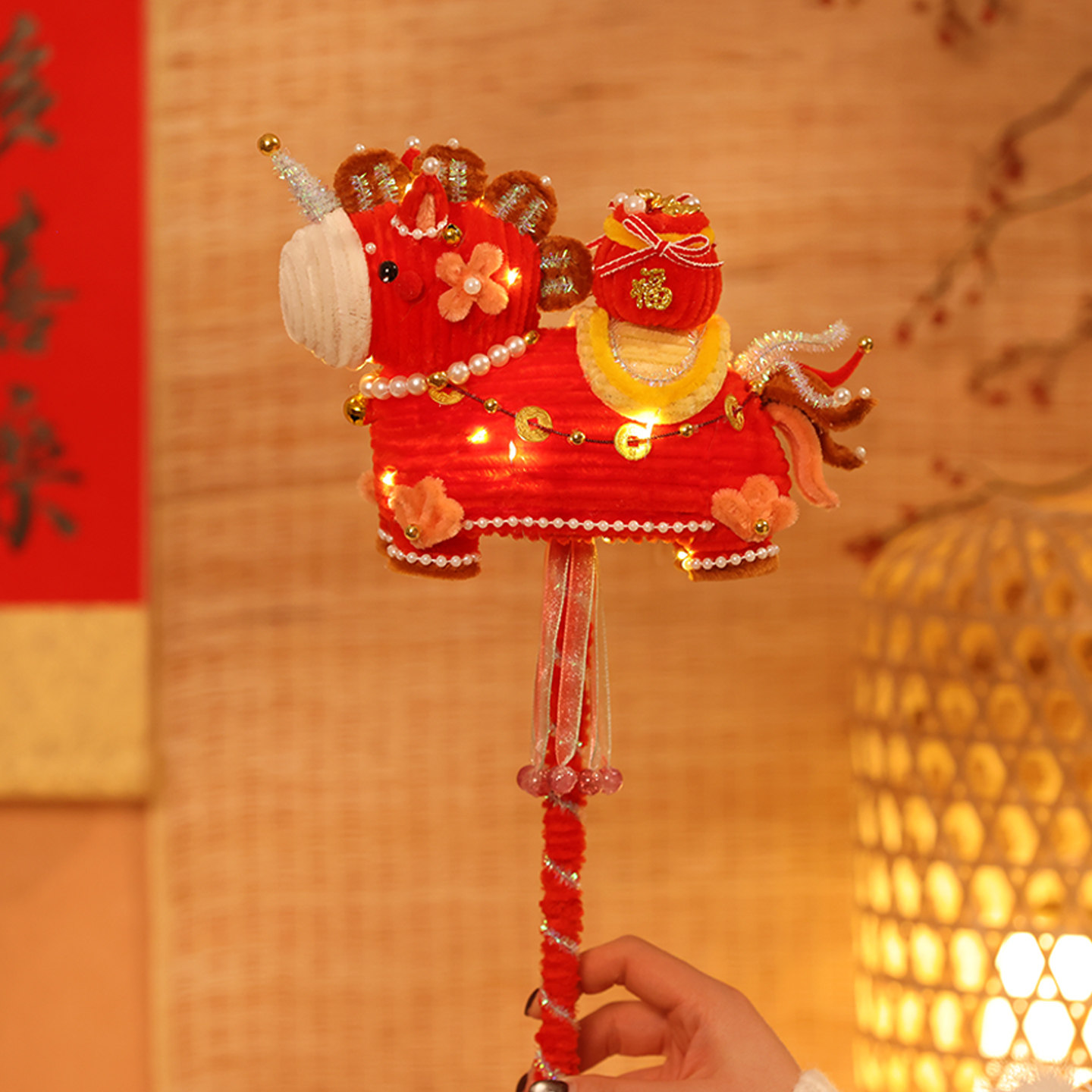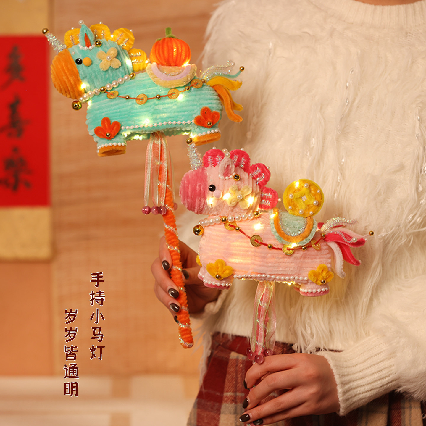 马年春节礼物手持马灯儿童玩具扭扭棒手工diy材料包元旦发光灯笼