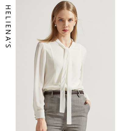 海兰丝2025春夏新款百搭V领长袖上衣气质淑女白色雪纺衬衫小衫女