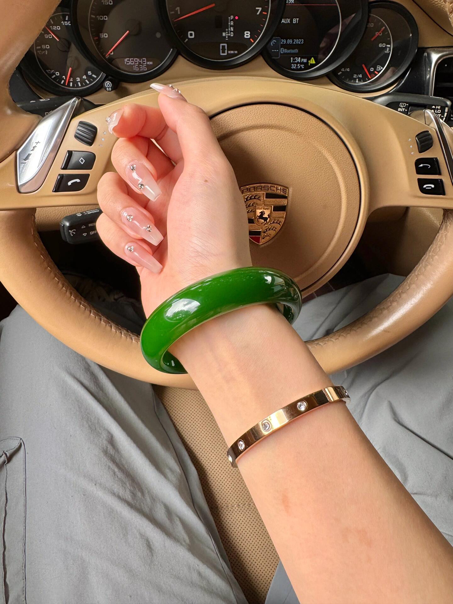 天然正品 新疆和田玉碧玉手镯 菠菜绿女款玉镯子送证书 生日礼物