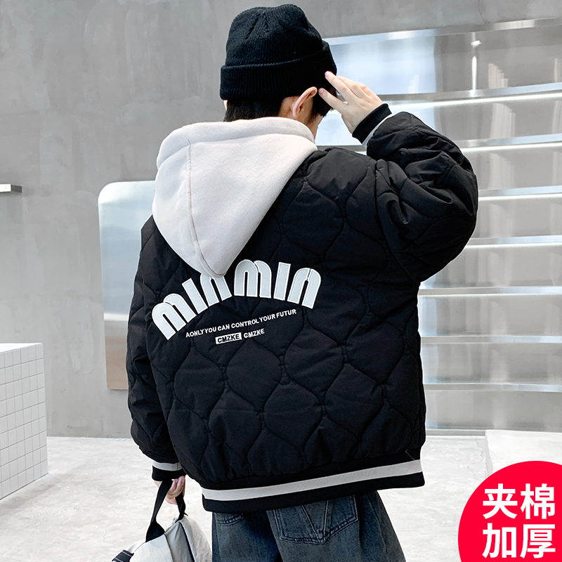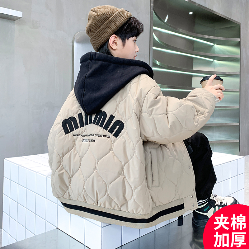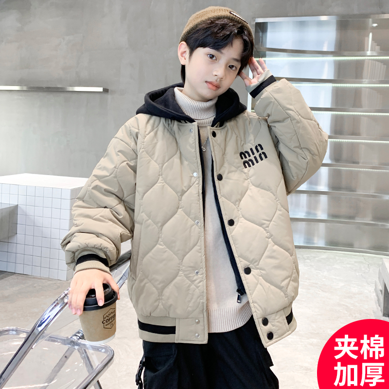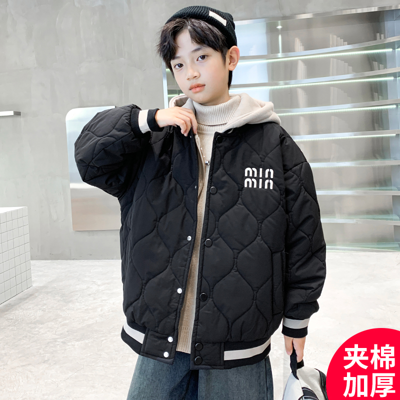男童外套秋冬款夹棉加厚2025新款冬季棒球服中大儿童男孩冬装棉服
