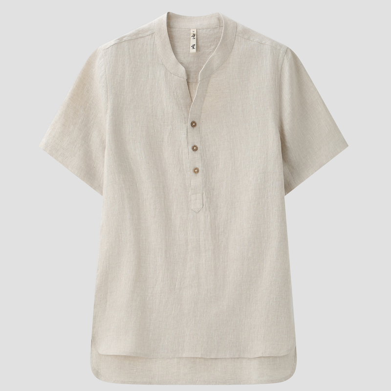 中国风100%亚麻短袖t恤男夏季宽松薄款上衣盘扣复古休闲半袖体恤