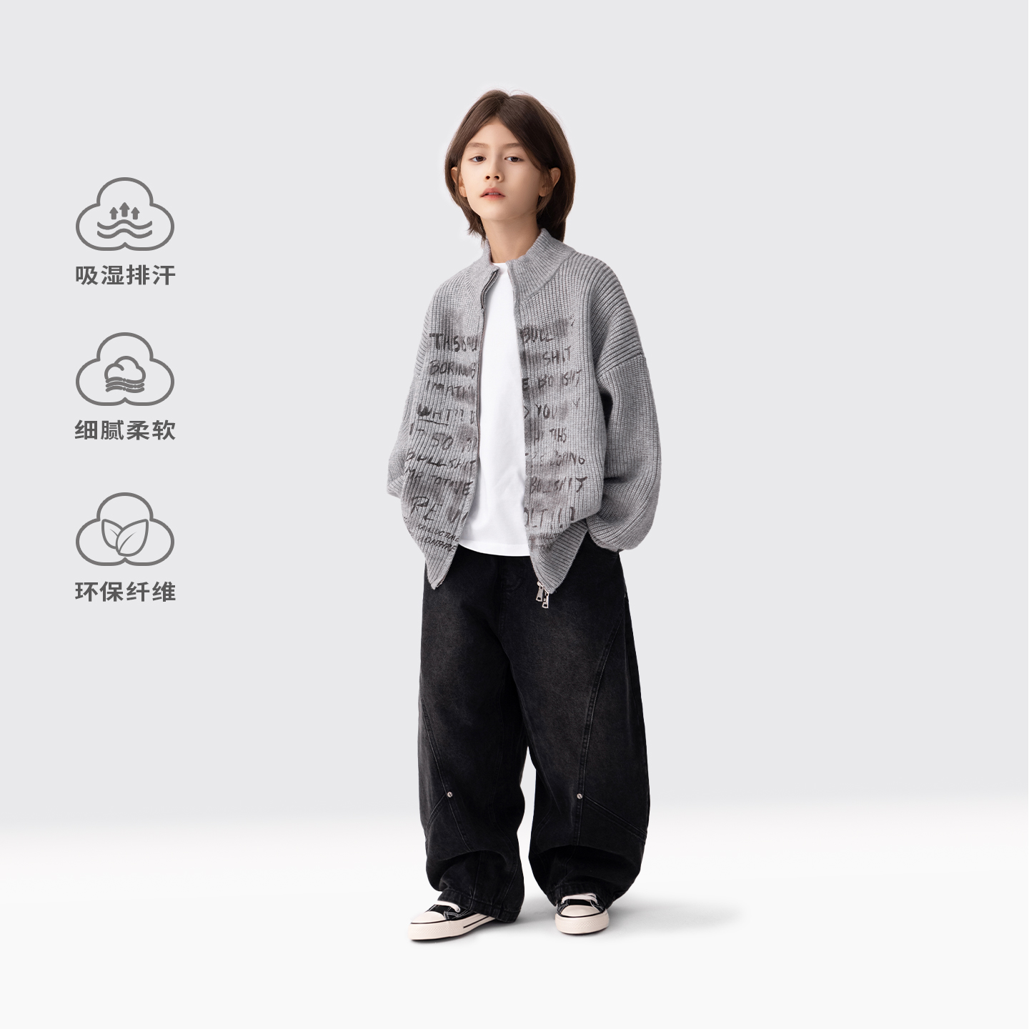 王兔兔男童牛仔裤2025秋冬新款中大童拼接款时髦直筒裤儿童裤子潮