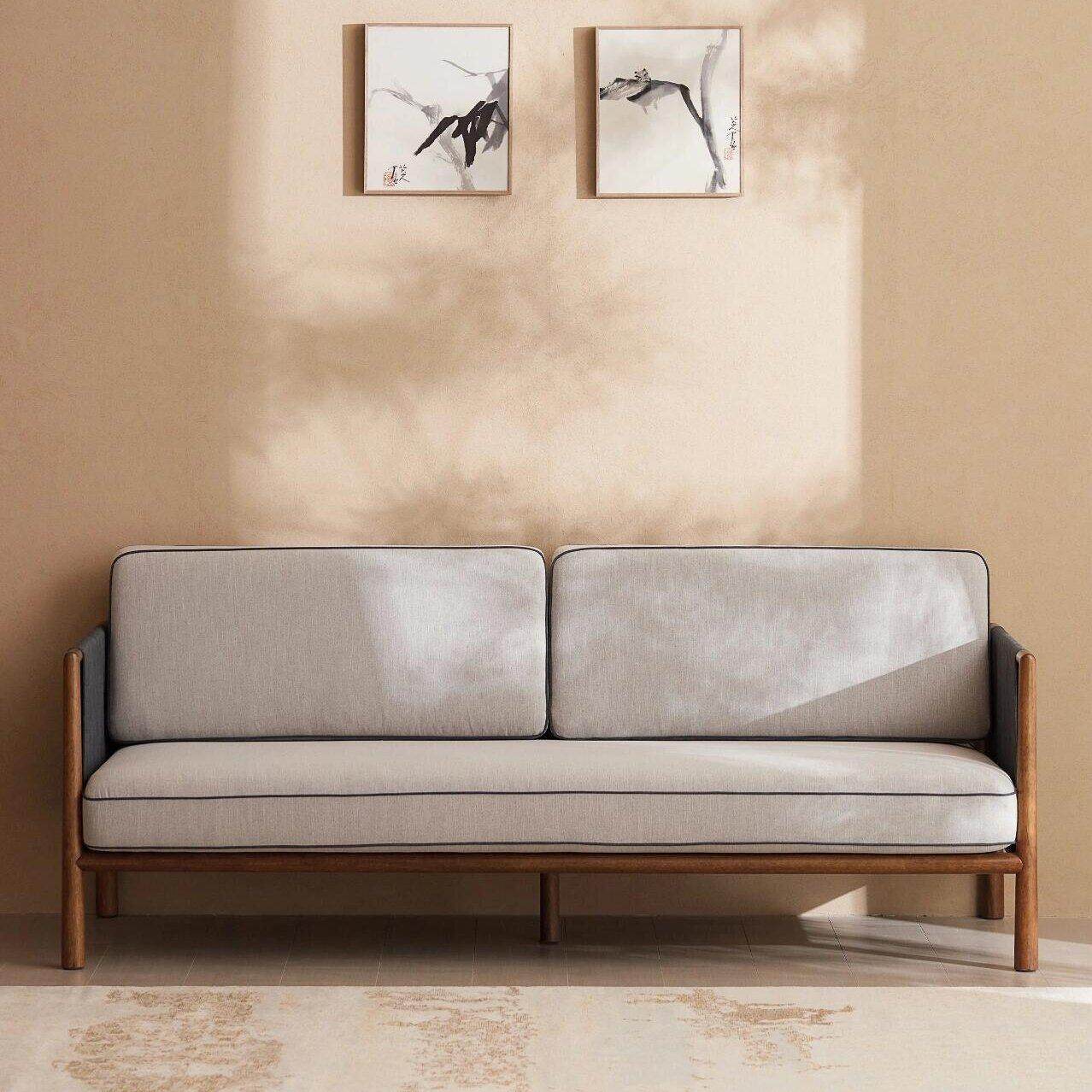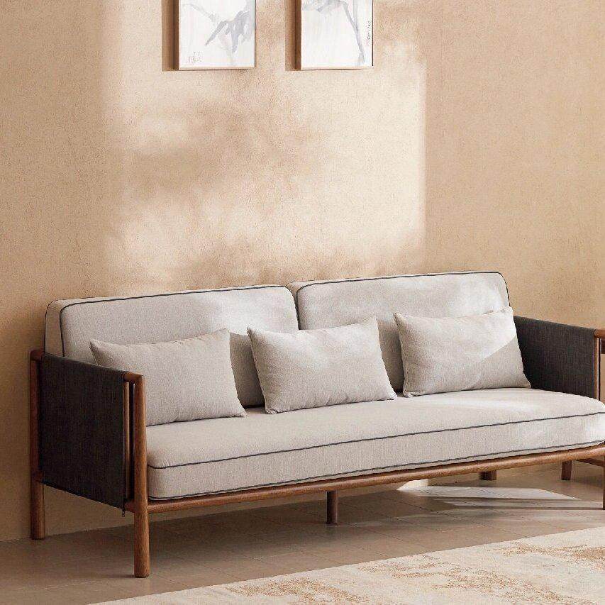 现代简约白蜡木布艺沙发客厅卧室办公室别墅两三人位家具实木定制