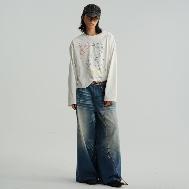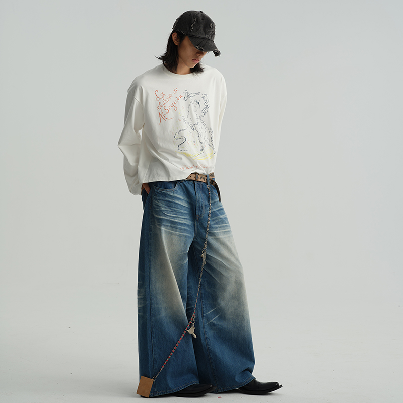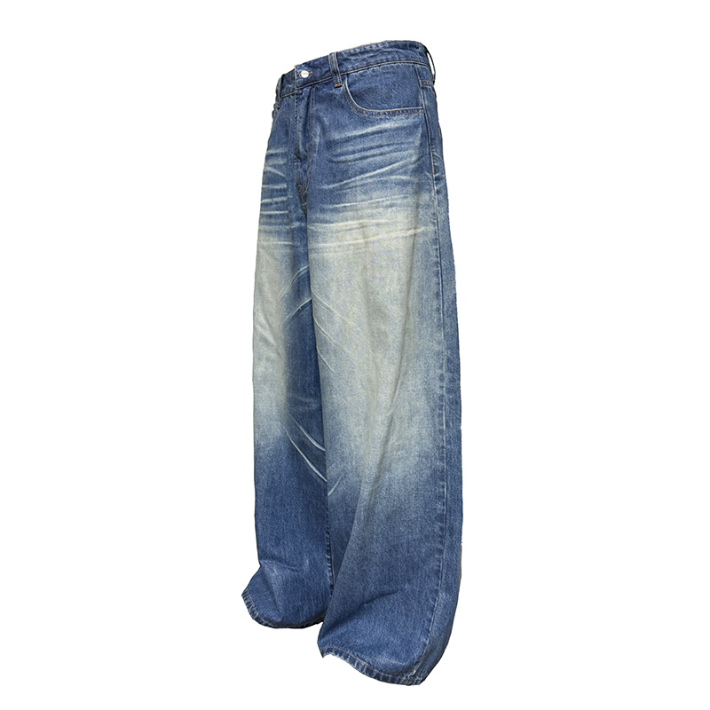 JCAESAR COATING DENIM 冰胶蓝色baggy牛仔裤 自然猫须 复古做旧