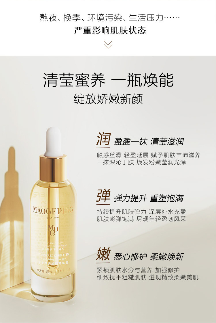 毛戈平奢华养肤焕能精华蜜补水保湿紧致深入面部精华修护30ml