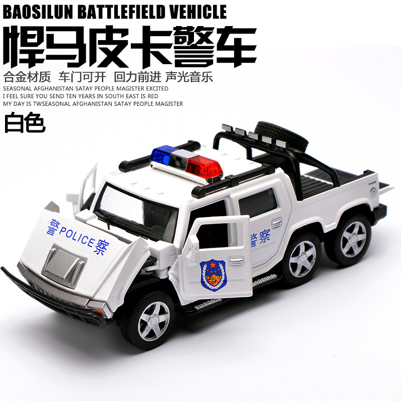 合金警车六轮悍马回力车模型儿童玩具小汽车男孩宝宝声光仿真警车