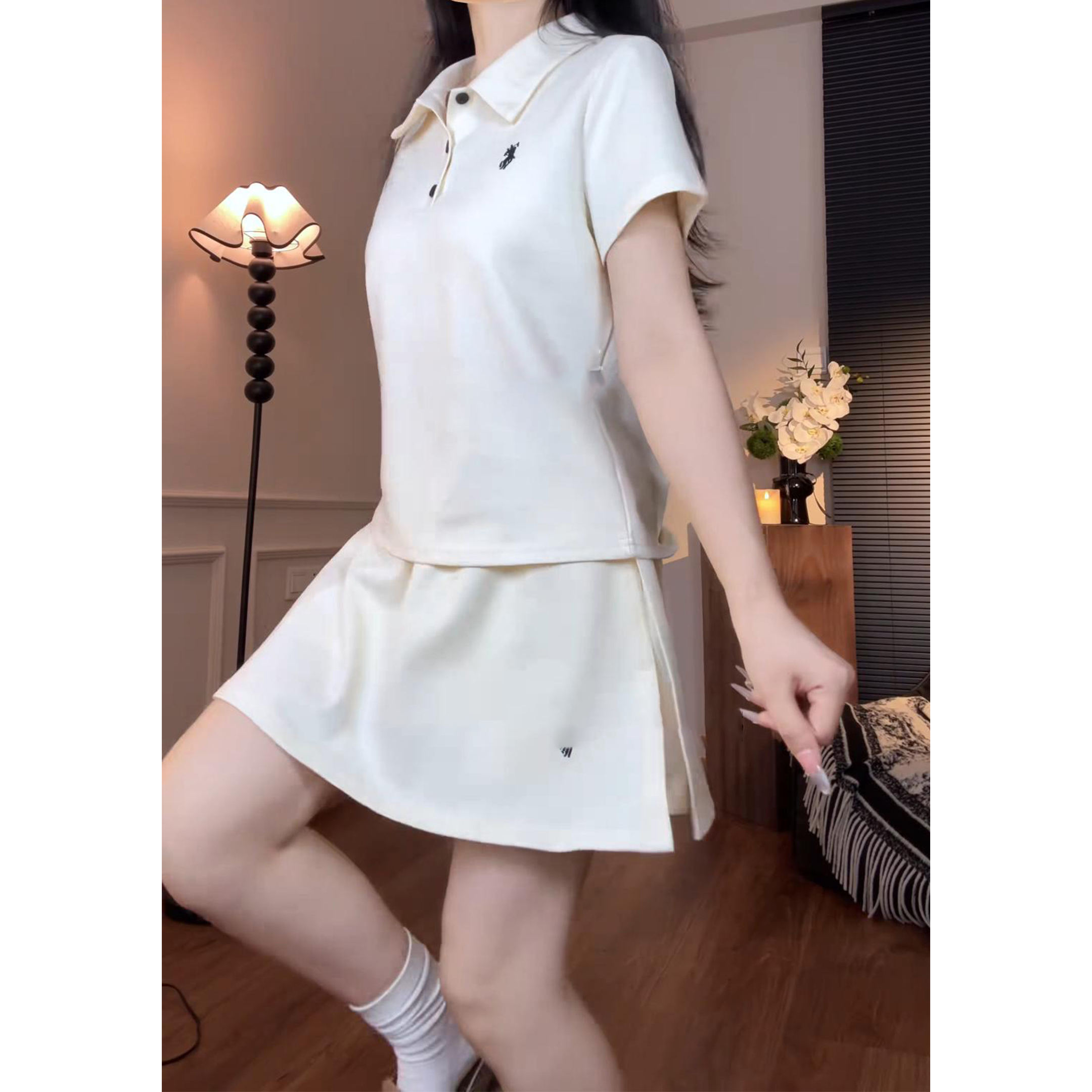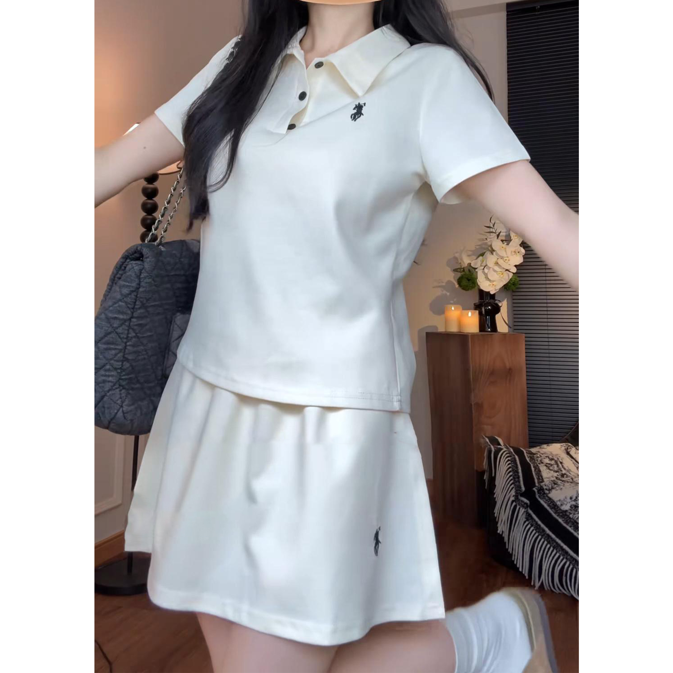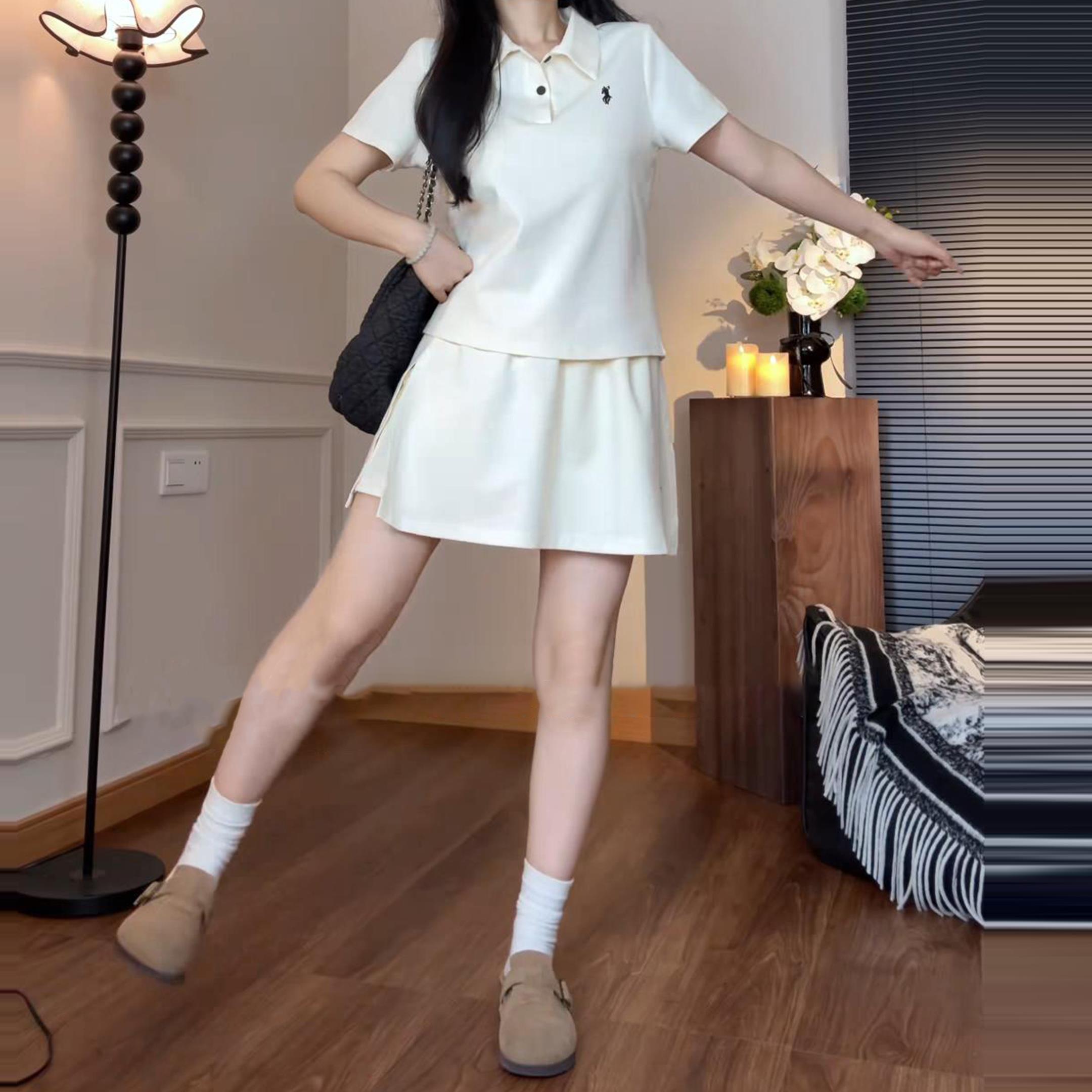 大尺码休闲 运动短袖套装女夏季胖mm显瘦POLO领上衣+半身裤裙两件