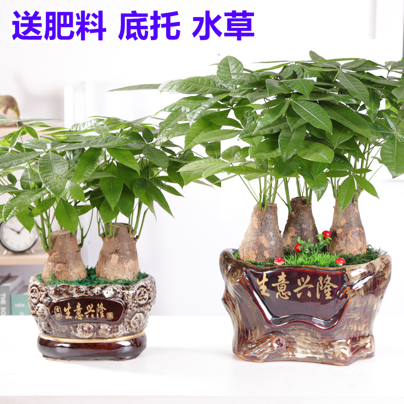 发财树盆栽大绿植物客厅办公室内小盆景 真花卉四季常青金钱树