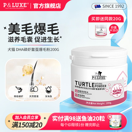 PLUXE宠物鳖蛋爆毛粉磷虾鱼狗狗猫咪卵磷脂美毛防掉毛布偶泰迪