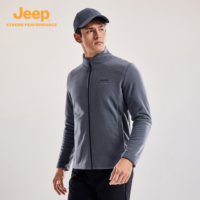 Jeep吉普户外抓绒衣男士早秋保暖外套立领摇粒绒休闲通勤百搭上衣